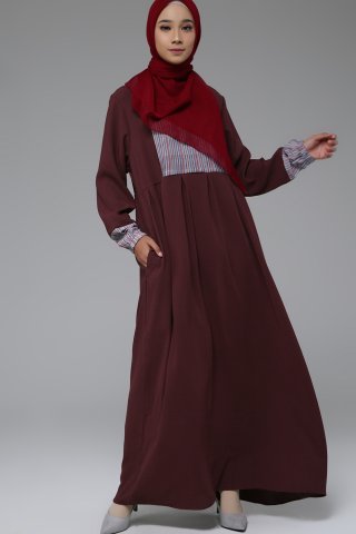 Syaheera Gizella Dress Mocca ini bisa jadi pilihan baju lebaran kamu. Gamis panjang ini desainnya chic banget. Ada 2 buah kantong di bagian sampingnya mempermudah kamu kalau membawa benda kecil seperti smartphone. Baju gamis ini keren untuk acara formal maupun kasual.